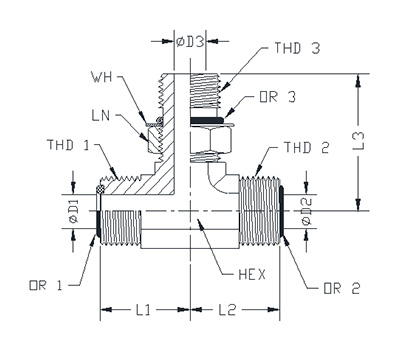 | ITEM | P/N | HEX | THD 1 | THD 2 | THD 3 | L1 | L2 | L3 | D1 | D2 | D3 | OR 1 | OR 2 | LN | WH | OR 3 |