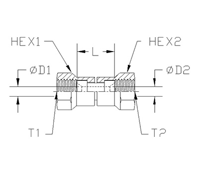 | ITEM | P/N | T1 | T2 | L | D1 | D2 | HEX1 | HEX2 |
