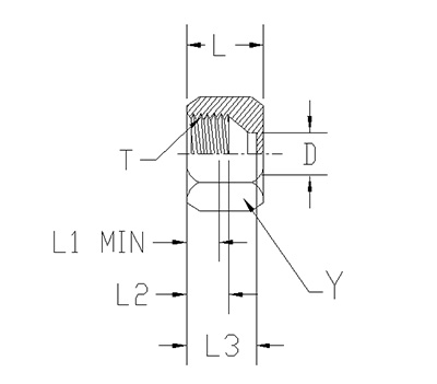 | ITEM | P/N | Y FLATS | T | D | L1 MIN | L2 | L3 | L |