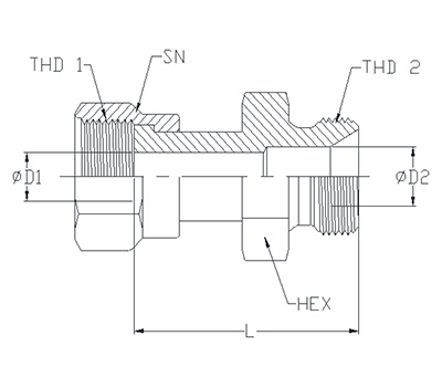 | ITEM | P/N | HEX | THD 1 | THD 2 | L | D1 | D2 | SN |