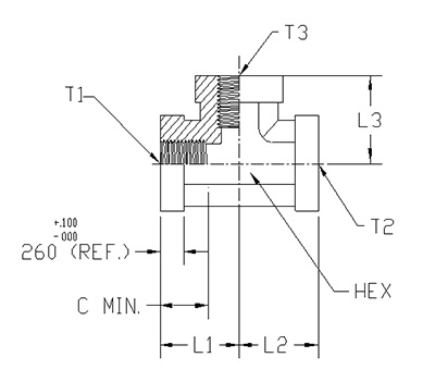 | ITEM | P/N | T1 | T2 | T3 | B | C MIN. | L1 | L2 | L3 | HEX |