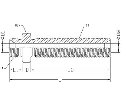 | ITEM | P/N | T1 | T2 | D1 | D2 | L1 | L2 | B | L | HEX |