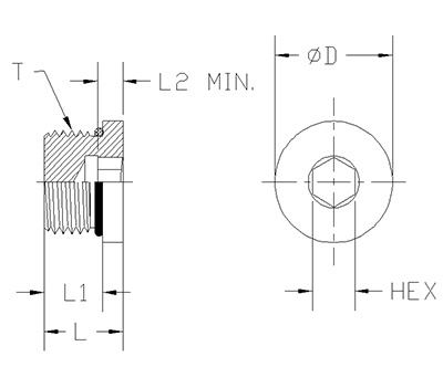 | ITEM | P/N | T | L | L1 | L2 MIN. | D | HEX |